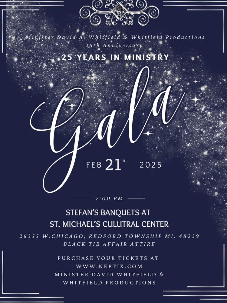 Minister David A. Whitfield and Whitfield Productions has been tremendously blessed to celebrate 25 years in Ministry. This experience has been a journey of faith, trials, tribulations, and most importantly, the favor of God.